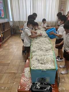 4年生以下の子どもたちは初めてのおまつりです。班長さんにいろいろ教えてもらって楽しんでいます。
