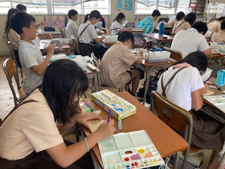 セロハンテープカッターを作っています。枠の部分に模様を描いています。