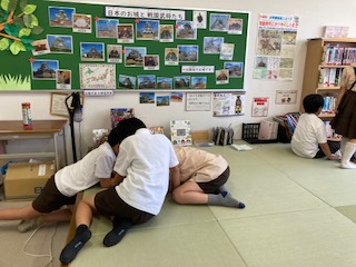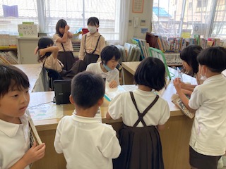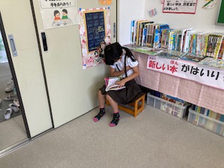 図書委員会児童が当番で、図書室を開けてくれています。運動場が暑いので、たくさんの子が本を読みに来ています。