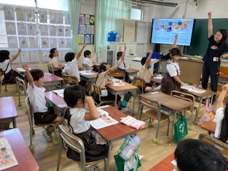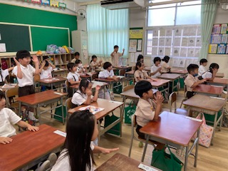 子ども達が考えたリズムを真似して手拍子などをしました。とても楽しんでやっています。