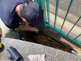 タイマー式で水やりができるように、管理作業員さんが、新たに水栓を設置しています。