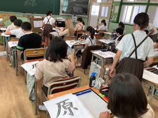「原」を練習しました。がんだれのはらいやはねに気をつけて書きました。