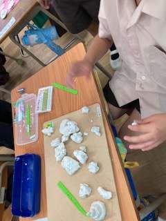 粘土で好きなものを作っています。動物や食べ物、自分など様々です。
