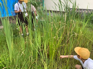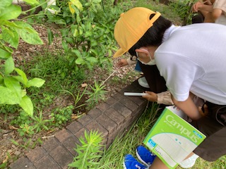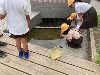 ビオトープの草むらや池の中など、気温や土の中の温度などを調べました。