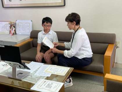 自主学習の表彰がありました。職員室の廊下にもノートのコピーが貼ってあります。