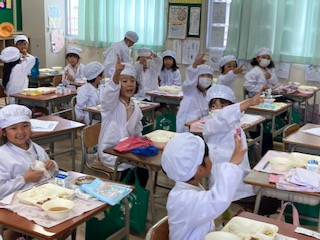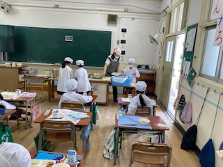 1学期最後の給食です。当番活動も上手にできるようになりました。