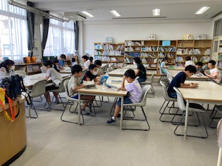 2回に分けて図書室に本を読みにきています。涼しくて快適です!