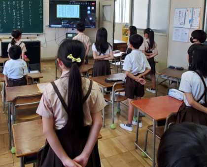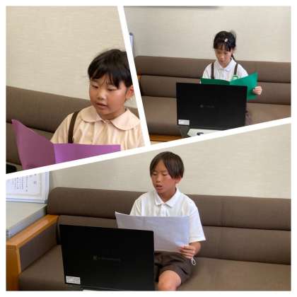 校長先生や生活指導の先生の話、4年生の代表による決意発表、図画の表彰、転入生3名の紹介をしました。