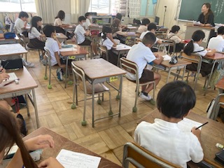 学校生活や自分のことについてのアンケートに答えていました。「自分には良いところがたくさんある」ということにもっともっと気づいてほしいですね。大宮小学校の子達は、少し控えめですね。