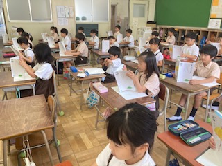 「紙飛行機」の詩を音読しました。気づいたことを発表しました。