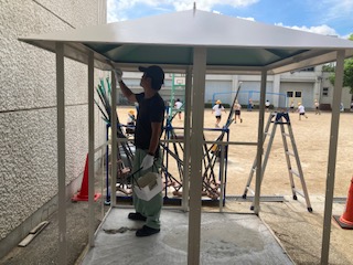 長く使っていなかったうさぎ小屋を管理作業員さんが改装して、竹馬を収納する小屋に変えてくださっています。