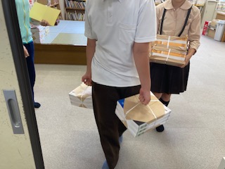 今日、後期用の教科書を配布しました。6年生は配布はなかったのですが、下の学年に配ってくれました。ありがとう!