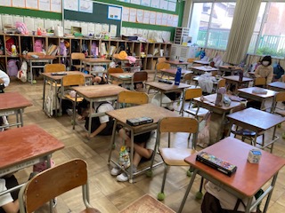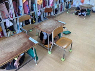 昨日13時30分、地震発生、その後津波を想定した警報アラートがなりました。掃除の時間でしたが、子ども達は机の下にもぐったり運動場に避難したりしました。いつでもどこでも、一人でも判断して避難できるようになることを望んでいます。