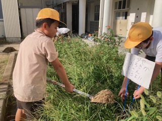 雑草は半分残しています。ここにはバッタやコオロギがたくさんいます。