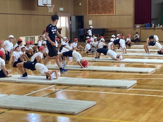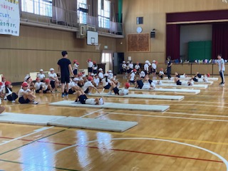合同でマット運動をしました。