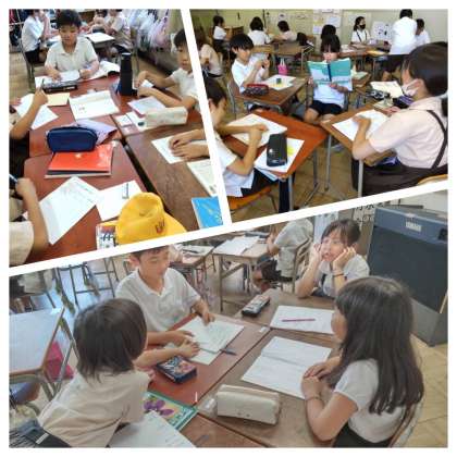 話し合いの仕方を学習しました。それをもとに、みんなが楽しく参加できる「運動会」と「遠足」の合い言葉を考え話し合いました。司会の進行にそってグループで話し合いました。
