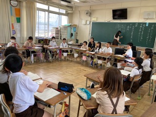 どんなことを紹介したら良いか話し合いをしました。話し合いの仕方を教科書の例を参考に学習しています。