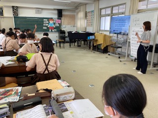 「星笛」の8分の6拍子のリズムを学習しました。1学期に学習した4分の4拍子との違いを比べました。