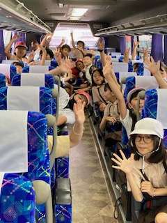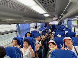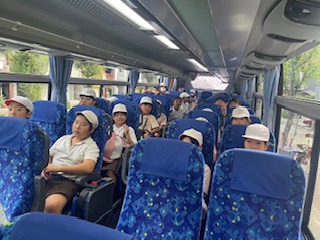 トイレ休憩を済ませ、出発しました。全員元気です!酔い止め用の飴を配っています。
