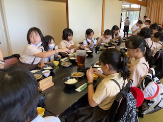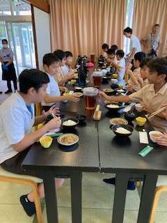しっかり食べて、筏体験に備えます。てきぱきと手際よく動いています。