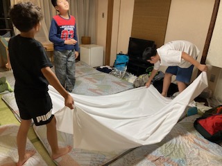 布団カバーもきちんとかけて、シーツも敷いて。なかなかの大変です。