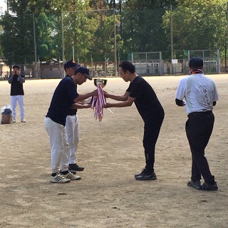 今日旭グラウンドで区のPTAソフトボール大会が開催されました。先生達も一緒に試合に出ました。男子チームは見事優勝です!