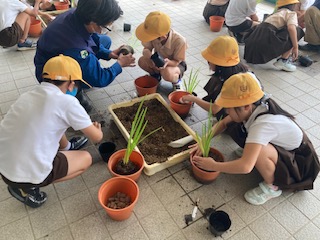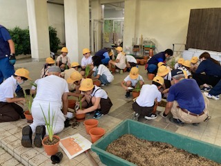 鶴見公園事務所の方から説明を聞き、6号鉢に植え替えました。緩効性の肥料も入れました。