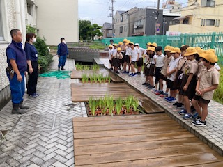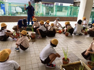 雨が急に降ったり止んだりしましたが、手際よく植え替えを終えました。ビオトープに運び、これから毎日世話をします。来年の5月、きれいな菖蒲が咲くとうれしいですね。