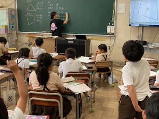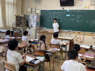 辺と頂点の数に着目して、三角形と四角形の違いを見つけました。三角形でも四角形でもない形もあり、なぜ違うのか理由も言って説明できました。