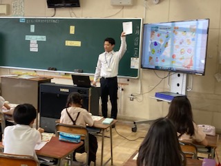 旭区の英語部の研究授業を行いました。初めは何が好きかを尋ねて、相手の答えが自分のカードにあれば丸をつけるビンゴゲームをしました。