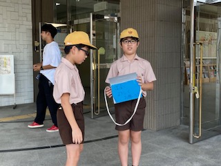 今朝から代表委員児童が玄関でユニセフ募金をしています。