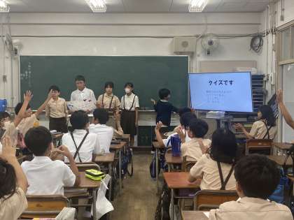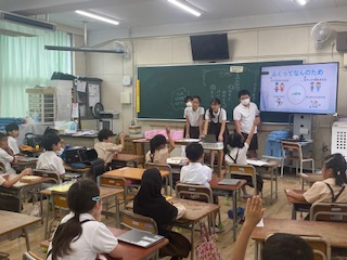 ユニクロ、GUさん主催の服のプロジェクトに参加してます。SDGsや難民支援の現状などについて授業を受けて子どもたちが主体となって活動を始めています。今日は各教室にいって、「服のプロジェクト」について説明しました。
