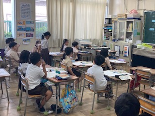 絵を見て、乗り物になっている人の数を調べました。式に表すと、同じ数ずつたすものと、違う数をたすものがあることに気づきました。