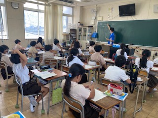 空気鉄砲を飛ばしたことを思い出しながら、筒の中では空気がどのようになっているか、予想して絵や言葉で表しました。