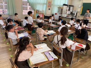 登場人物のくまのこやうさぎに言ってあげたいことを発表して、ノートにまとめました。