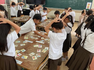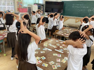 「犬棒カルタ」をしました。ことわざも覚えることができます。ひらがなの文字を見つけて札を取っていきました。