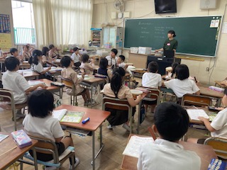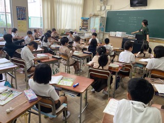 キツツキや妖精など,出てくる人物に合わせてウッドブロックなどの打楽器を打ちます。役割を決めて練習しました。