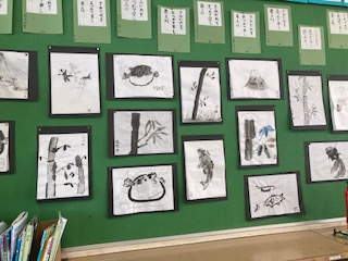 水墨画と俳句の書写作品を掲示しています。それぞれ味わいのある作品に仕上がりました。