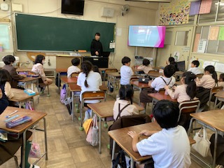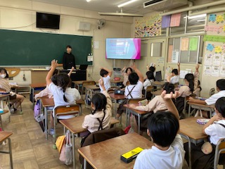 学校に不審な人が入ってきた時どうするか、クイズ形式で答え、実際の動きなどについて考えました。