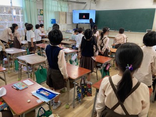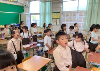 大宮小学校の校歌や運動会の歌を練習しました。校歌もよく覚えていて、大きな声が出ています。