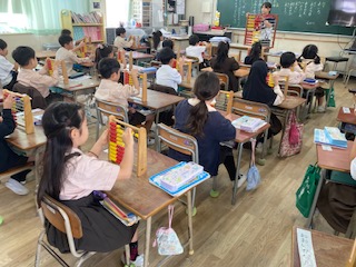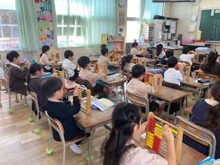 20までの数を確かめています。100玉算盤の使い方も慣れてきてさっと操作できます。