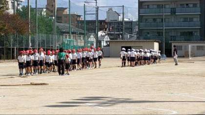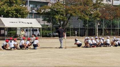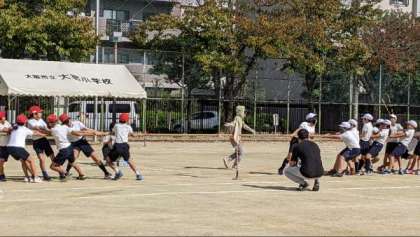 運動会で行う団体競技を行っていました。