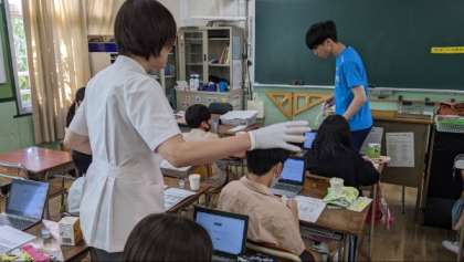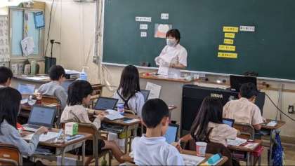 歯科衛生士の方に来ていただき、口の中をキレイにするためにフッ化物でうがいをし、歯磨きの学習をしました。