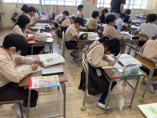 一文ずつ音読をしたり、要約してペアで確認したりしました。