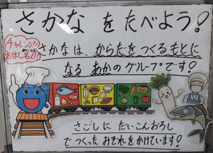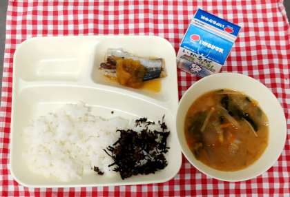 今日は、さごしのみぞれかけ、みそ汁、牛ひじきそぼろ、ご飯、牛乳でした。