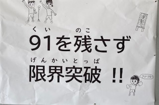 子ども達が考えた、今年の運動会のスローガンです!91(くい)は創立91周年をかけています。