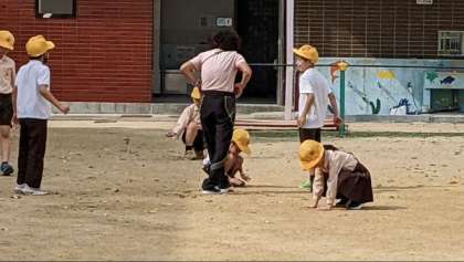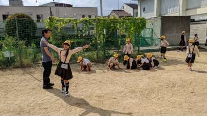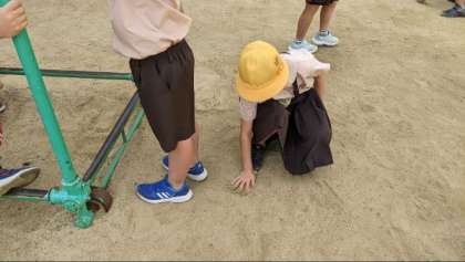 ひなたとひかげの地面を実際にさわり、違いを確かめていました。