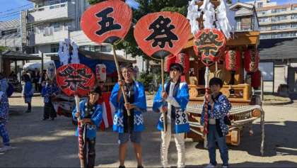 ワッショイ、ワッショイのかけ声と太鼓と鐘の音が響き渡っていました。