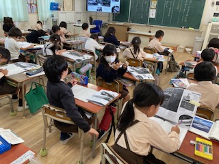 「いろいろなふね」の発展学習として、乗り物図鑑を作ります。自分が書きたい乗り物のページを見ながら、下書きをしています。