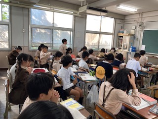 作品の面白さを味わうために色に着目したり、扉に書かれた文章についての意味を交流したりしました。